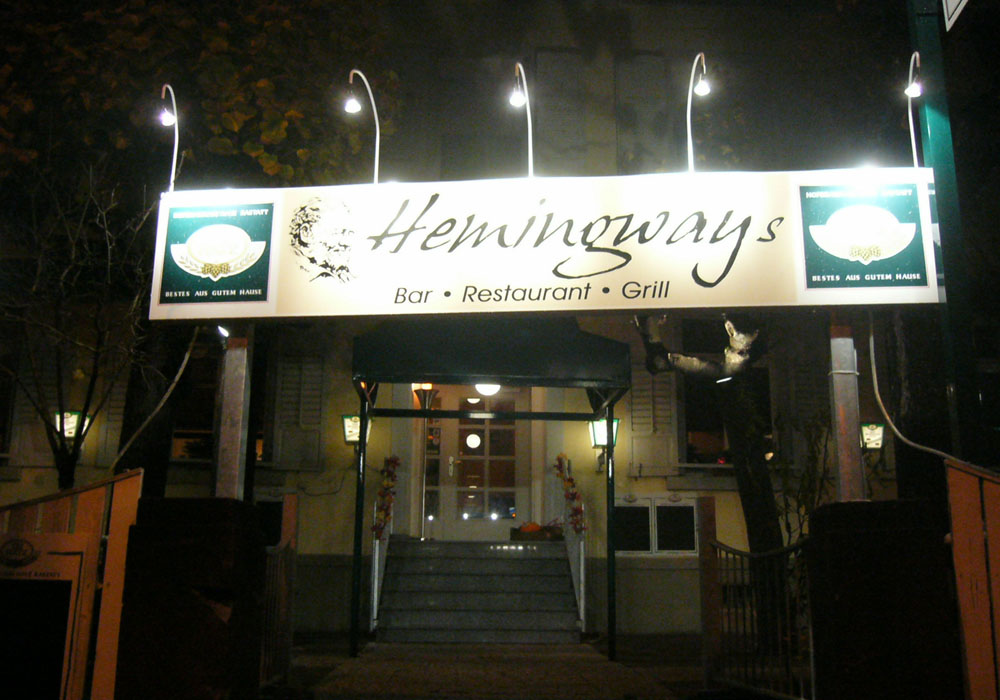 Geniessen Sie die mediterane Atmosphäre von Hemingways. Das Restaurant bietet Ihnen neben Grillspezialitäten, auch Nudelgerichte oder Flammkuchen.Reservierung erforderlich! Thomas & Patrizia Burkhardt Rheinstr. 12 76532 Baden-Baden 07221/61117 0172/7213104